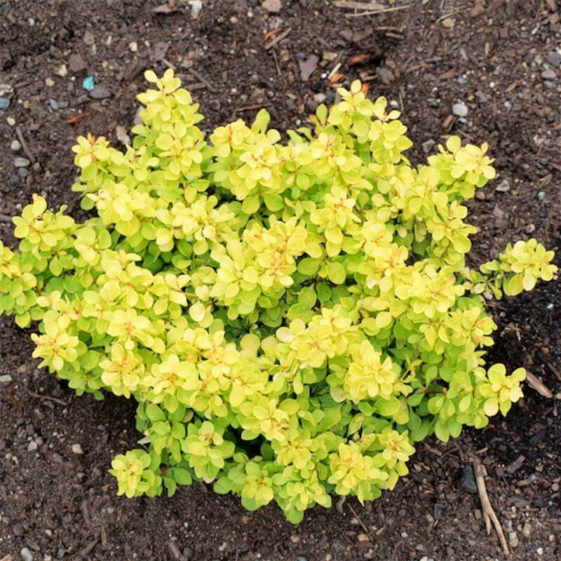 Барбарис Тунберга Bonanza Gold – компактный декоративный куст, высотой до полуметра, который разрастается в диаметре до 70 сантиметров. Название свое получил, благодаря мелким лимонно-золотистым листьям, которыми густо усыпаны ветви кустарника. В мае куст обильно цветет мелкими желтыми цветами, а в сентябре на кустах рдеют красные ягоды продолговатой формы. Сорт не боится прямых солнечных лучей и не «подгорает» даже в самое жаркое лето. Неприхотлив к почве, но лучше растет на умеренно увлажненных почвах с хорошей системой дренажа. Переносит достаточно сильные морозы и засуху. Колючий кустарник образует низкорослую изгородь, предупреждая проникновение на газоны.