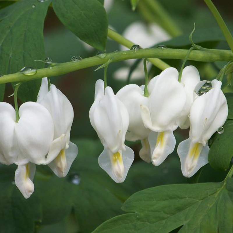Дицентра красивая Аврора (Dicentra formosa Aurora) – низкорослые травяные многолетники, которые вырастут в пышные кустарники с необычными цветками. Растение достигает 30-40 сантиметров в высоту и растет без пересадки до 8 лет. Цветет с мая по июнь белыми поникающими цветками сердцевидной формы, собранными в кисти. Листочки зелено-серые, перисто-рассеченные. Для более яркого окраса растение рекомендуется высаживать на солнечных либо полузатненных участках. Дицентра не прихотлива к почве. Благодаря мясистым корням не нуждается в частом поливе. Растение морозостойко, устойчиво к болезням.