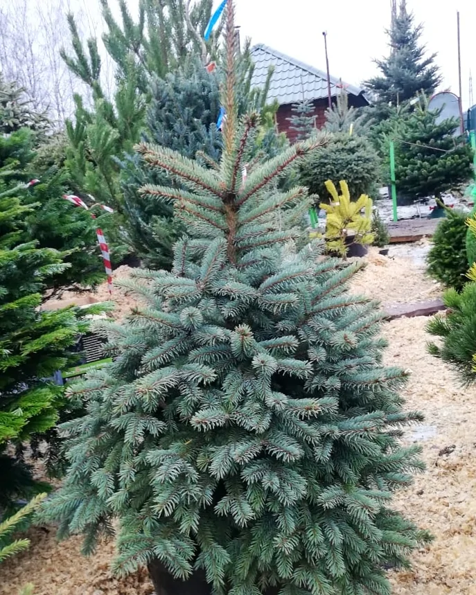 Идеальное новогоднее дерево для людей с нестандартным мышлением. Её необыкновенно голубые ветви образуют правильные плотные ярусы, почти горизонтальные, а основание настолько густо оформлено хвоей, что подарки проще и оригинальней класть на ветки. Иголочки её страптивы, но при этом совершенно не сыпучи!