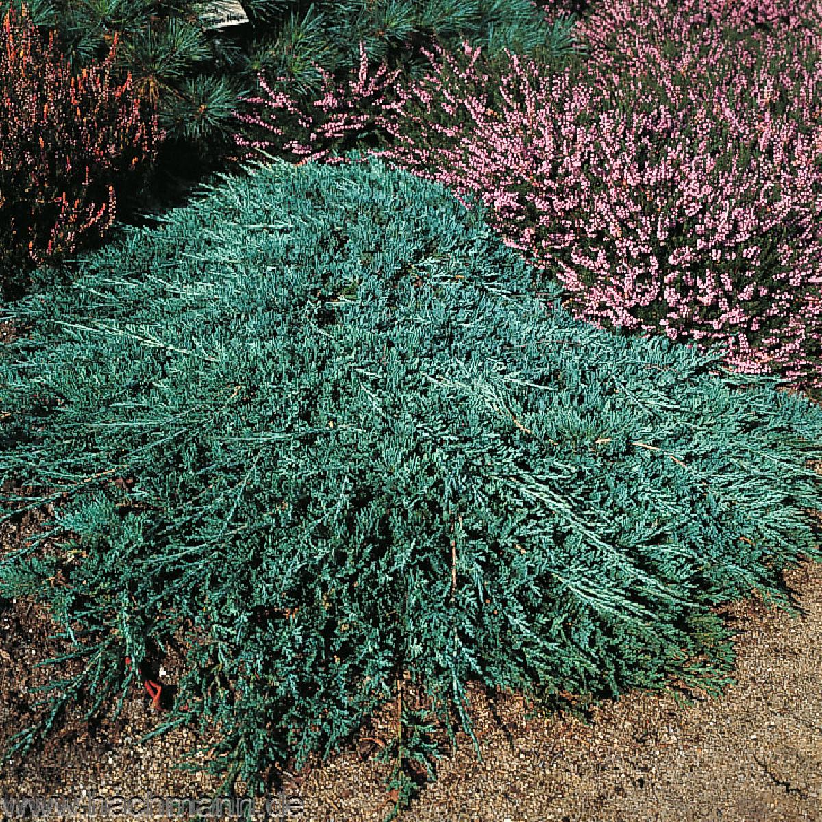 Стелющийся кустарник, достигающий 0,1-0,2 м высоты и около 2 м в диаметре. Годовой прирост 15 см. Голубовато -зелёные ветви, очень гибкие, быстро разветвляются и стелются по земле, образуя густой 'ковёр'. Рекомендуется для альпинариев, для каменных стенок (свисающие побеги) и на откосы, для насаждений в контейнерах. Можжевельник горизонтальный Вилтони замечательное покровное растение, на небольшой площади может заменять траву