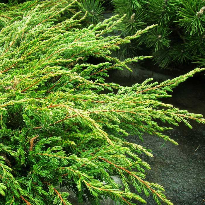 Это карликовый сорт, не превышающий в высоту 0,4 м, зато формирующий раскидистую крону до 2 м в диаметре. Скелетные ветви толстые, сильные, равномерно разрастаются от центра куста. Можжевельник медленнорастущий, за год прибавляет только на 5-6 см. Побеги сильноветвящиеся, густые, формируют правильный круг. Крупномер обыкновенный Repanda покрыт мягкой игольчатой хвоей темно-зеленого окраса. Саженцы хорошо развиваются на солнечных участках с питательной и умеренно увлажненной почвой. Тяжелые грунты и тень их угнетают.