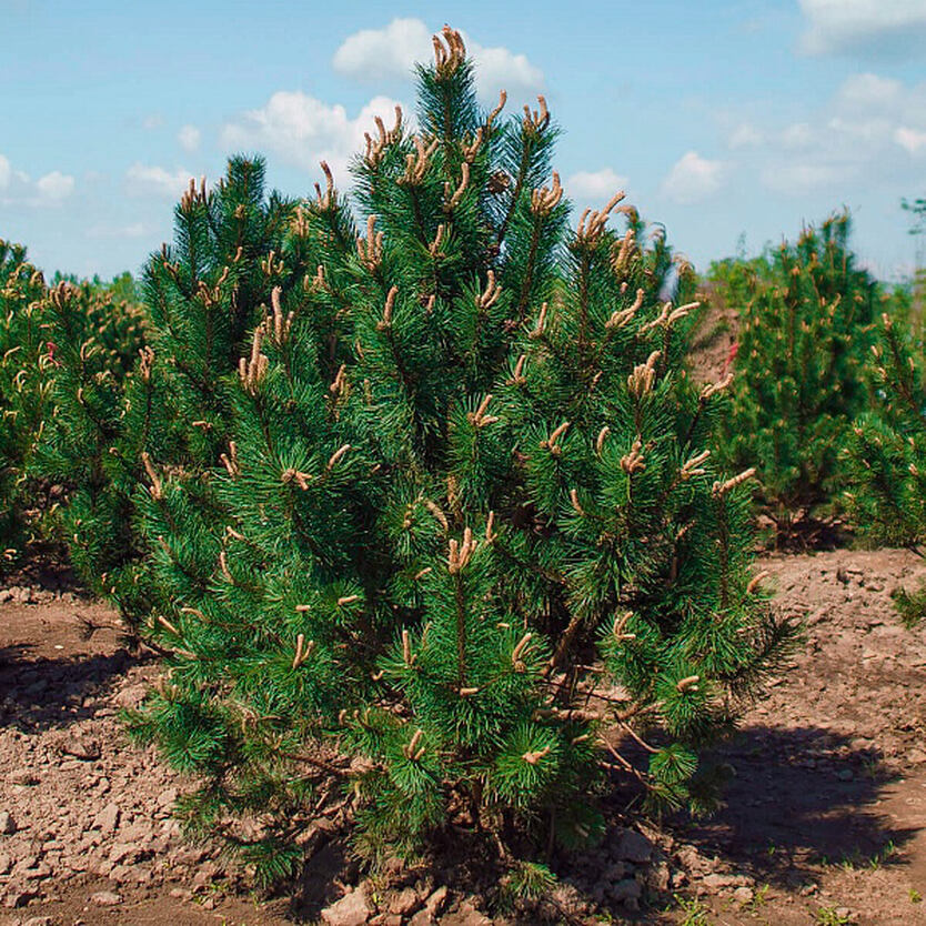 Сосна горная Унцината – одноствольное хвойное дерево, отличающееся овальной кроной. Во взрослом состоянии высота дерева может достигать 20 метров. Ежегодный прирост – до 20 см. Ярко-зеленые хвоинки с небольшим изгибом вырастают в длину на 8 см. семена высаживают в скверах, парках и лесах. Они хорошо смотрятся как в одиночной, так и в групповой посадке.
